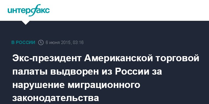 Экс-президент Американской торговой палаты выдворен из России за нарушение миграционного законодательства