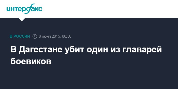 Москва. 6 июня. INTERFAX.RU - Главарь так называемой "Ауховской" диверсионно-террористической группы Сулейман Зайнулабидов уничтожен в ночь на субботу недалеко от селения Комсомольское Хасвюртовского района Дагестана, сообщил "Интерфаксу" источник в правоохранительных органах.
