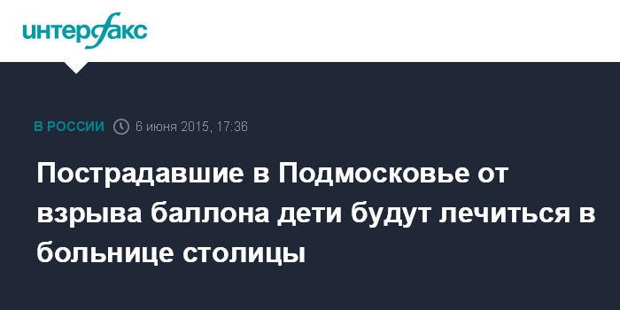 Пострадавшие в Подмосковье от взрыва баллона дети будут лечиться в больнице столицы