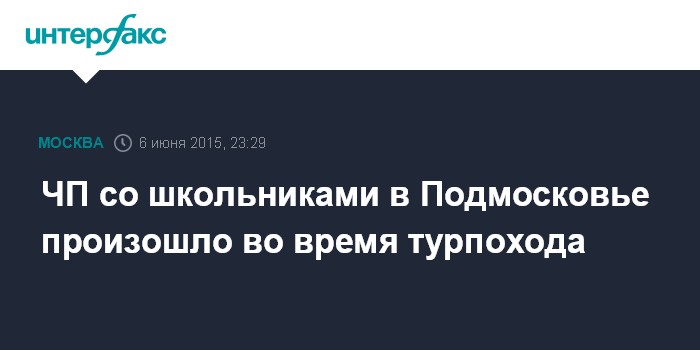 Москва. 6 июня. INTERFAX.RU - Уполномоченный при президенте России по правам ребенка Павел Астахов уточнил, что инцидент, в результате которого от взрыва баллона пострадали школьники в Подмосковье, произошел во время турпохода.