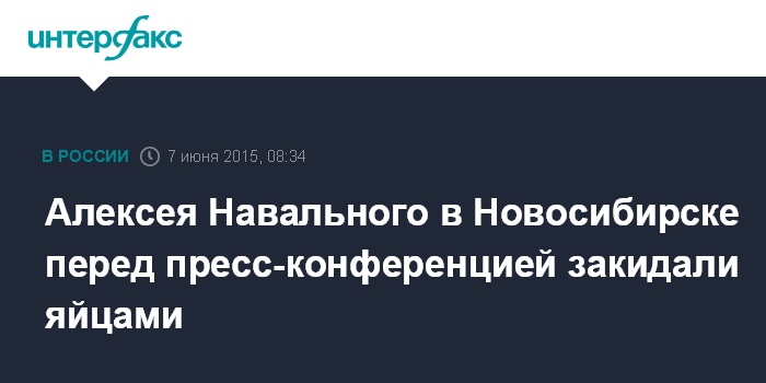 Москва. 7 июня. INTERFAX.RU - Оппозиционера Алексея Навального перед началом пресс-конференции в Новосибирске трое неизвестных закидали яйцами.
