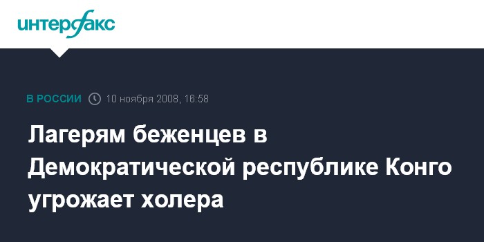 Москва. 10 ноября. INTERFAX.RU - Лагерям беженцев в Демократической республике Конго угрожает эпидемия холеры, сообщает в понедельник британская телерадиокорпорация BBC.