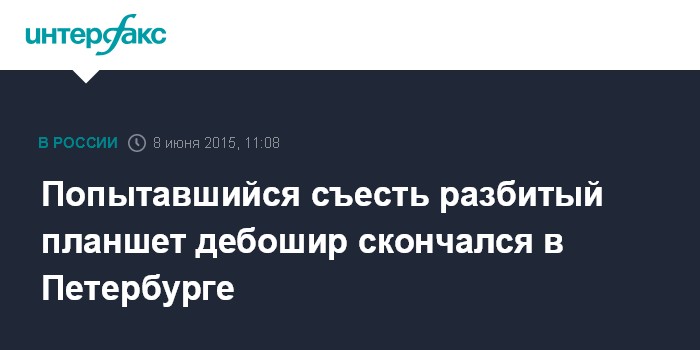 Попытавшийся съесть разбитый планшет дебошир скончался в Петербурге