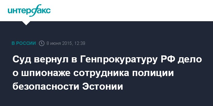 Суд вернул в Генпрокуратуру РФ дело о шпионаже сотрудника полиции безопасности Эстонии