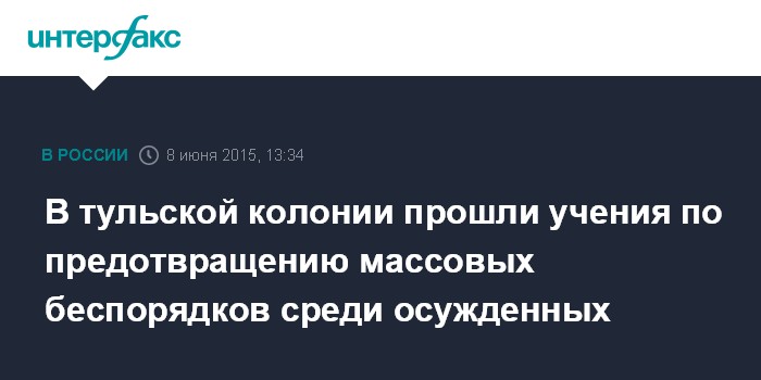 Москва. 8 июня. INTERFAX.RU - Готовность сотрудников УФСИН и подведомственных подразделений к действиям при возникновении массовых беспорядков проверили в ходе учений в одной из колоний Тульской области.