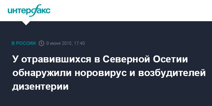 Москва. 9 июня. INTERFAX.RU - У жителей Алагира Северной Осетии, отравившихся питьевой водой, обнаружены норовирус и шигелла. Об этом сообщил на закрытом заседании главный санитарный врач республики Алан Тибилов.