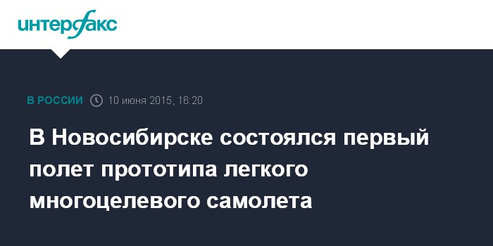 "Сегодня на аэродроме Ельцовка Новосибирского авиационного завода имени Чкалова, выполнил первый вылет прототип легкого многоцелевого самолета, разработанного и построенного в Сибирском НИИ авиации имени Чаплыгина", - говорится в сообщении пресс-службы компании "Сухой", поступившем в "Интерфакс" в среду.