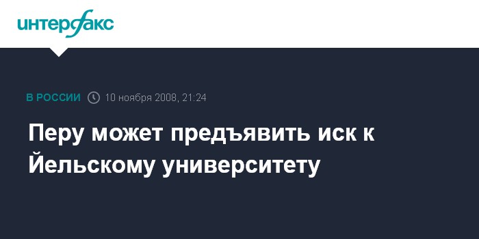 Москва. 10 ноября. INTERFAX.RU - Правительство Перу готово в судебном порядке потребовать у Йельского университета (США) возврата тысяч артефактов из сокровищницы крепости Мачу-Пикчу, сообщает британская телерадиокорпорация BBC со ссылкой на перуанские СМИ.
