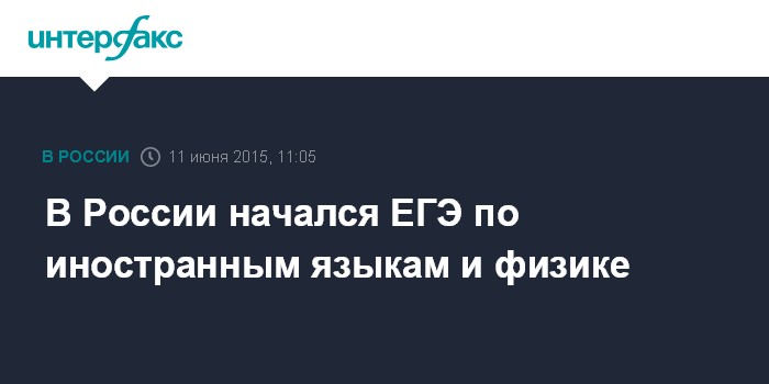 Москва. 11 июня. INTERFAX.RU - В регионах московского часового пояса начался ЕГЭ по физике и письменная часть экзамена по иностранным языкам, сообщили в четверг в пресс-службе Рособрнадзора.