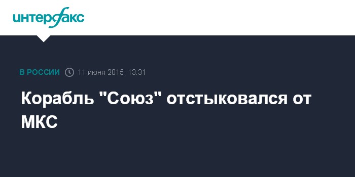 "Команда на расстыковку космического корабля "Союз ТМА-15М" от МКС выдана 11 июня в 13:18 по московскому времени. Корабль совершил маневр увода от станции, четко следуя циклограмме полета", - сказал представитель ЦУПа в четверг.