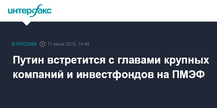 Москва. 11 июня. INTERFAX.RU - В рамках Санкт-Петербургского международного экономического форума президент РФ Владимир Путин встретится с руководителями крупных компаний, корпораций и инвестфондов, сообщил пресс-секретарь главы государства Дмитрий Песков.
