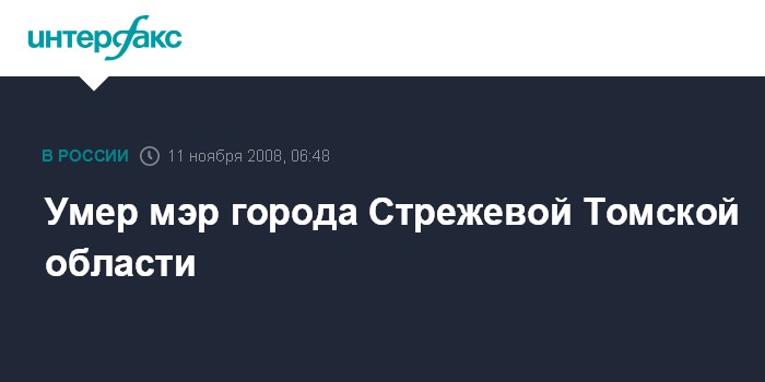 Томск. 11 ноября. ИНТЕРФАКС-СИБИРЬ - Мэр города Стрежевой Томской области Алексей Трошин скончался в понедельник, сообщила агентству "Интерфакс-Сибирь" управляющий делами городской администрации Татьяна Фишер.