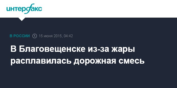 Москва. 15 июня. INTERFAX.RU - Экспертная комиссия начала проверку качества проведенных дорожных работ в Благовещенске (Амурская область), так как растаявшая из-за жары дорожная смесь затруднила движение транспорта по городским улицам.