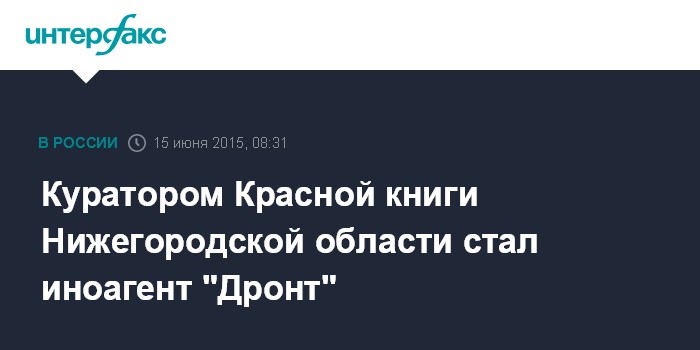 Москва. 15 июня. INTERFAX.RU - Нижегородский экологический центр "Дронт", который в мае был включен в реестр НКО-иностранных агентов, определен учреждением-куратором Красной книги Нижегородской области.