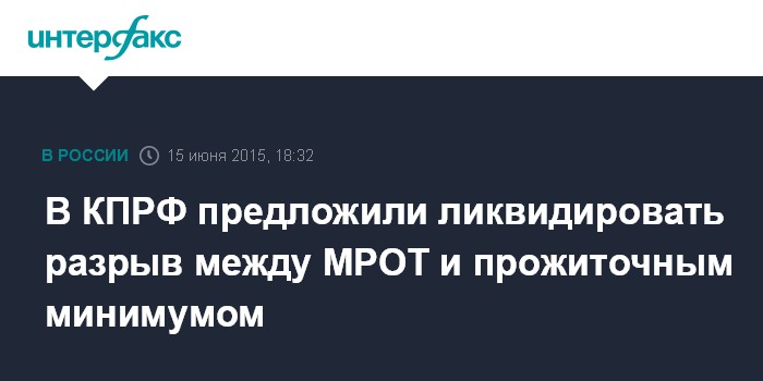 Москва. 15 июня. INTERFAX.RU - Депутаты от КПРФ внесли в Госдуму законопроект, направленный на реализацию норм действующего законодательства, которые устанавливают, что МРОТ не может быть меньше прожиточного минимума.