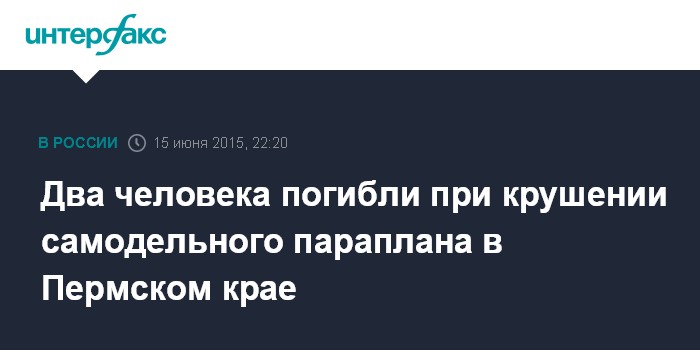 "Параплан кустарного производства взлетел с водоема в 70 км от Перми и, пролетев несколько метров, ударился о землю и развалился на части", - сказал собеседник агентства.