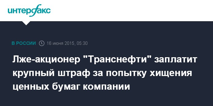 Лже-акционер "Транснефти" заплатит крупный штраф за попытку хищения ценных бумаг компании