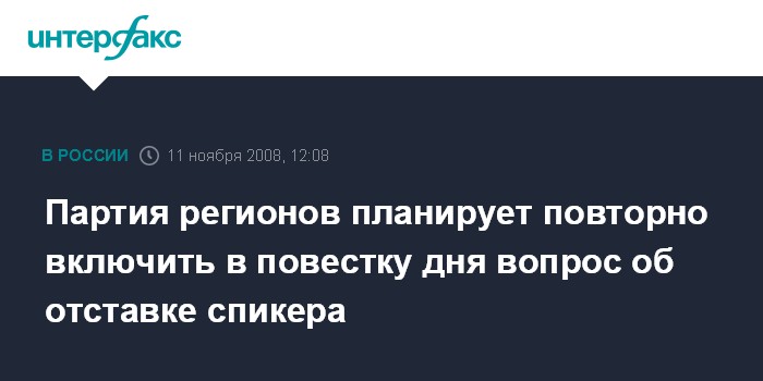 Москва. 11 ноября. INTERFAX.RU - Фракция Партии регионов намерена повторно включить в повестку дня работы парламента вопрос об отставке председателя Верховной Рады Арсения Яценюка.