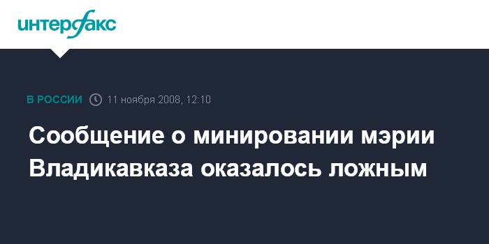 Москва. 11 ноября. INTERFAX.RU - Информация о взрывном устройстве, якобы заложенном в здании администрации местного самоуправления Владикавказа, не подтвердилась, сообщил агентству первый заместитель министра внутренних дел Северной Осетии Сослан Сикоев.