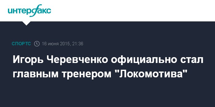 Москва. 16 июня. INTERFAX.RU - Игорь Черевченко официально стал главным тренером "Локомотива", сообщает пресс-служба московского футбольного клуба во вторник.