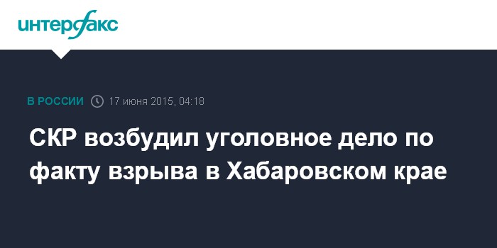 СКР возбудил уголовное дело по факту взрыва в Хабаровском крае