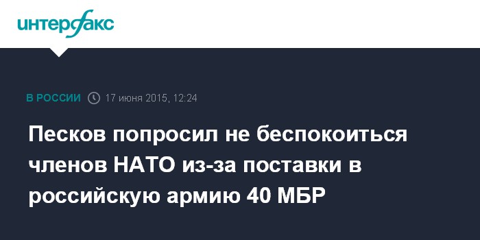 Песков попросил не беспокоиться членов НАТО из-за поставки в российскую армию 40 МБР