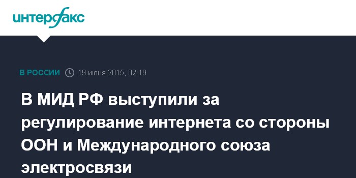 В МИД РФ выступили за регулирование интернета со стороны ООН и Международного союза электросвязи