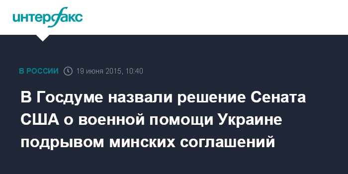 По его словам, решение Сената о военной помощи Украине подрывает саму суть минских договоренностей.