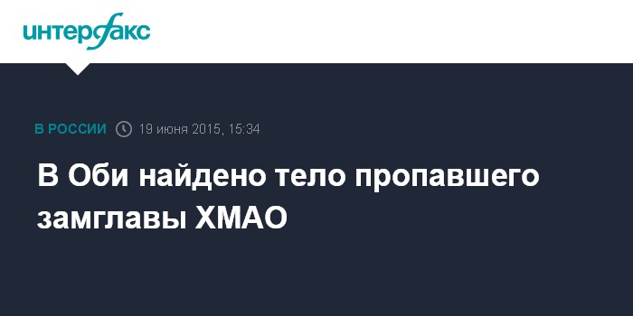 Москва. 19 июня. INTERFAX.RU - Найденное накануне тело мужчины в реке Обь принадлежит заместителю губернатора Ханты-Мансийского автономного округа Виталию Ермошину, сообщила старший помощник руководителя Уральского следственного управления на транспорте СКР Наталья Гунькина.