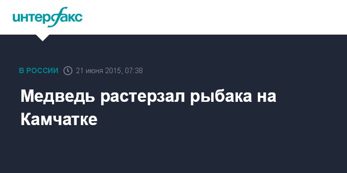 Москва. 21 июня. INTERFAX.RU - Охотоведы на Камчатке ищут медведя, который, как предполагается, растерзал мужчину. Об этом "Интерфаксу" сообщила пресс-секретарь УМВД России по Камчатскому краю Жанна Бакаева.