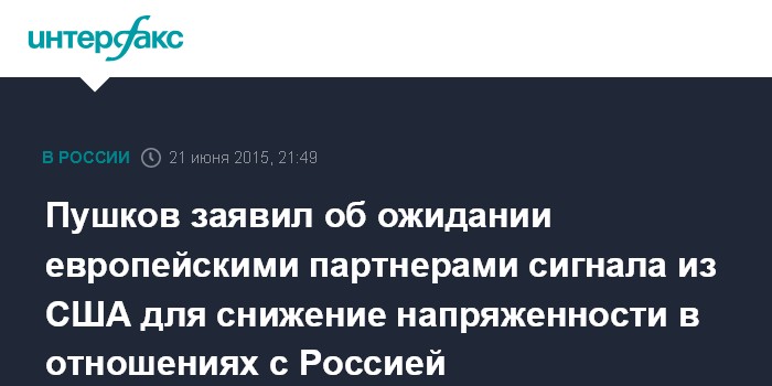Москва. 21 июня. INTERFAX.RU - Начинать снижение напряженности в отношениях России и ЕС необходимо с сокращения "черных списков", но европейские партнеры, вероятно, ждут сигнала из США, считает глава думского комитета по международным делам Алексей Пушков.