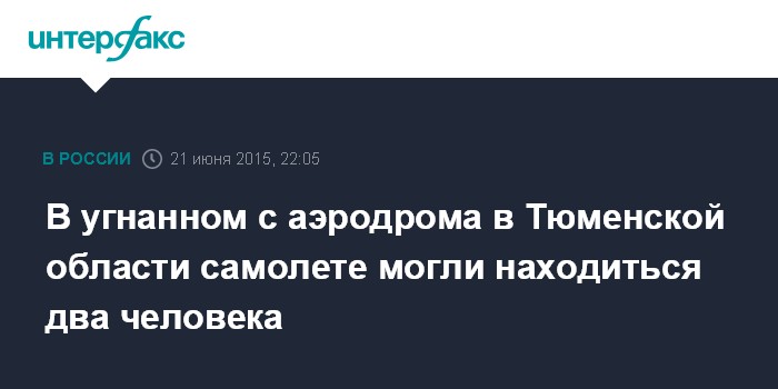 В угнанном с аэродрома в Тюменской области самолете могли находиться два человека