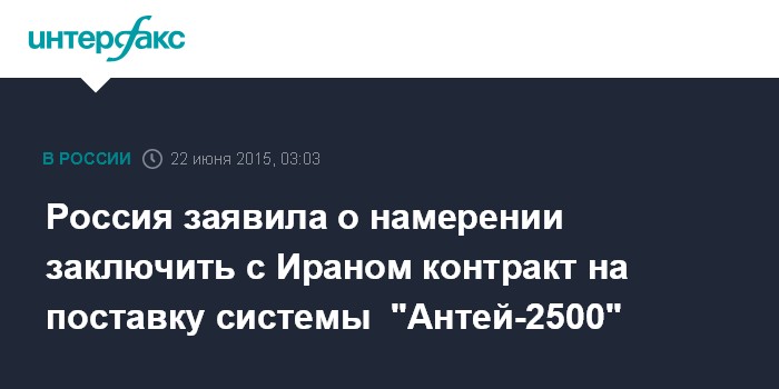 "Как только судебный процесс будет свернут, Россия заключит с Ираном новый контракт на новейшую систему "Антей-2500"", - сообщает издание.