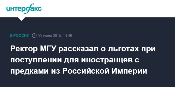 Ректор МГУ рассказал о льготах при поступлении для иностранцев с предками из Российской Империи
