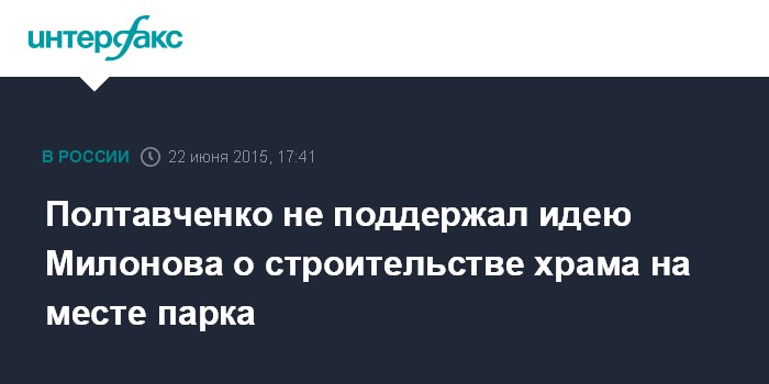 Полтавченко не поддержал идею Милонова о строительстве храма на месте парка