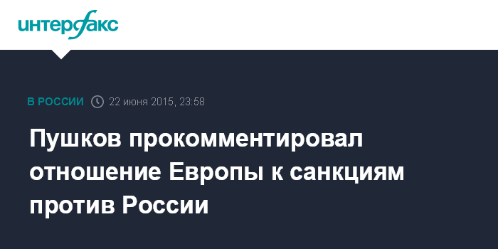Москва. 23 июня. INTERFAX.RU - Глава комитета Госдумы по международным делам Алексей Пушков отмечает, что Евросоюз, продлив санкции против России, отказался при этом от их ужесточения.