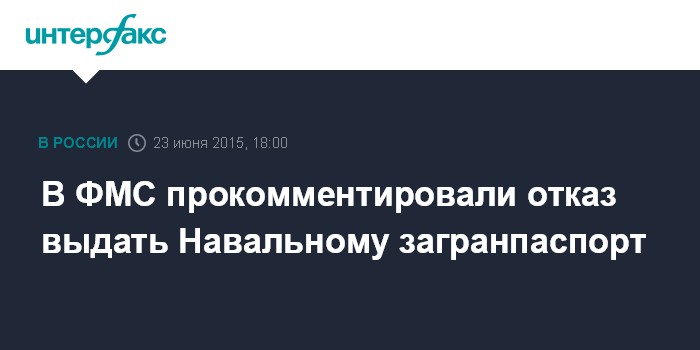 Москва. 23 июня. INTERFAX.RU - Федеральная миграционная служба, отказавшая оппозиционеру Алексею Навальному в выдаче загранпаспорта, прокомментировала свое решение.