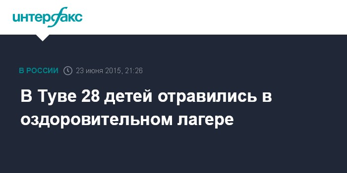 Москва. 23 июня. INTERFAX.RU - В детском оздоровительном лагере "Орленок" в Республике Тува произошло массовое пищевое отравление, говорится в сообщении республиканского Минздрава.