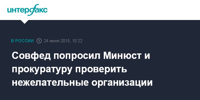 Москва. 24 июня. INTERFAX.RU - В Совете Федерации просят Генпрокуратуру и Минюст проверить деятельность нежелательных организаций.