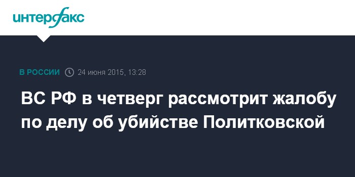 Москва. 24 июня. INTERFAX.RU - Верховный суд РФ отложил на 25 июня рассмотрение жалобы фигурантов дела об убийстве в 2006 году журналистки Анны Политковской, осужденных на сроки от 12 лет до пожизненного.