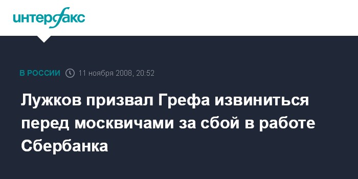 Лужков призвал Грефа извиниться перед москвичами за сбой в работе Сбербанка