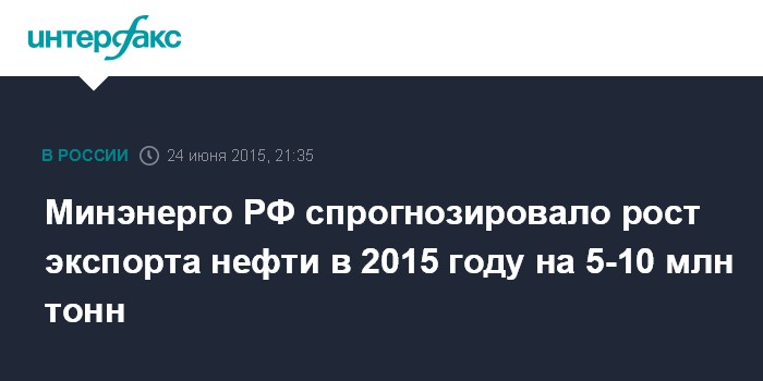 Москва. 24 июня. INTERFAX.RU - Минэнерго РФ считает, что экспорт российской нефти в 2015 году вырастет в сравнении с 2014 годом.