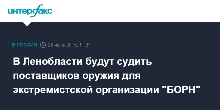 Москва. 25 июня. INTERFAX.RU - Члены группировки, обвиняемые в подпольном изготовлении и поставке огнестрельного оружия для экстремистской организации "БОРН", предстанут перед судом в Ленинградской области, сообщается в четверг на сайте Генпрокуратуры РФ.