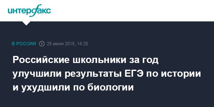 Москва. 25 июня. INTERFAX.RU - Результаты единого государственного экзамена 2015 по биологии и истории почти не отличаются по средним тестовым баллам прошлогодних, сообщили в четверг "Интерфаксу" в пресс-службе Рособрнадзора.