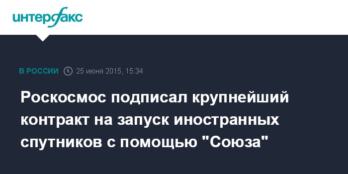 "Этот контракт является крупнейшим в истории оказания пусковых услуг. И выбор ракет "Союз" - свидетельство высокой конкурентоспособности российской ракетно-космической техники", - прокомментировал соглашение глава Роскосмоса Игорь Комаров, которого цитирует пресс-служба агентства.