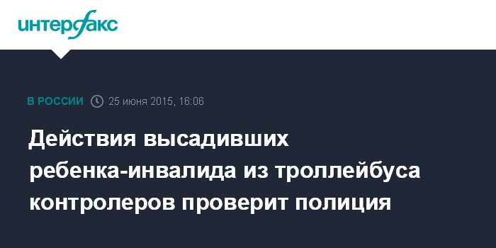 Москва. 25 июня. INTERFAX.RU - Столичные полицейские проверят действия контролеров, высадивших из троллейбуса 16-летнюю девушку с инвалидностью из-за сомнений в подлинности ее социальной карты, сообщил "Интерфаксу" в четверг руководитель пресс-службы ГУ МВД по Москве Андрей Галиакберов.