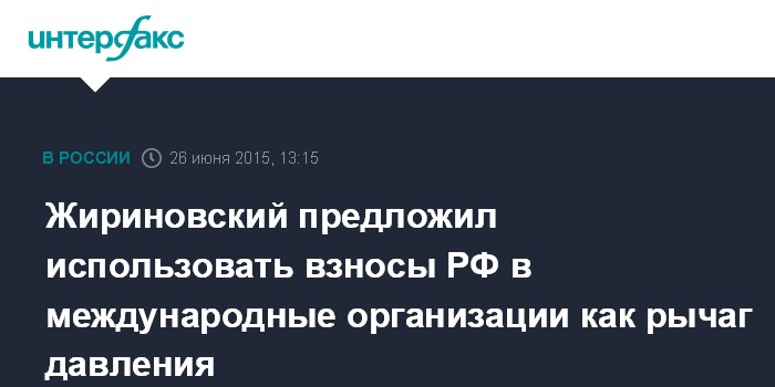 Москва. 26 июня. INTERFAX.RU - Лидер ЛДПР и ее фракции в Госдуме Владимир Жириновский предложил использовать взносы России в международные организации в качестве инструмента политического давления.