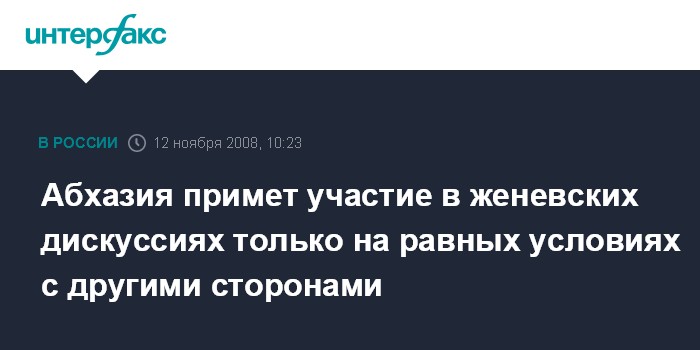 Сухуми. 12 ноября. INTERFAX.RU - Делегация Абхазии поедет в Женеву, но намерена участвовать в международных дискуссиях по ситуации в Закавказье только в качестве равноправного участника.