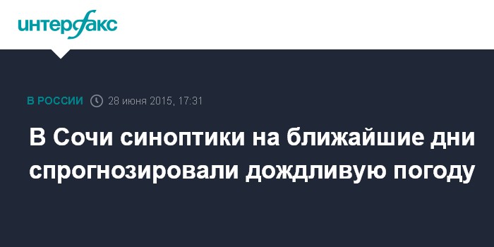 Москва. 28 июня. INTERFAX.RU - Сочинский гидрометеоцентр на ближайшие сутки прогнозирует дождливую погоду с грозой и порывистым ветром до 14 м/сек.