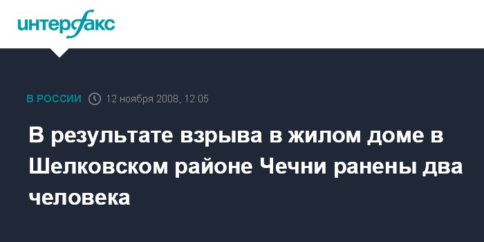 В результате взрыва в жилом доме в Шелковском районе Чечни ранены два человека